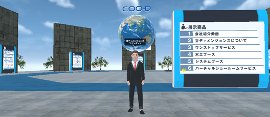仮想空間のショールームでアテンダントが空ディメンジョンズのサービス内容を紹介いたします。